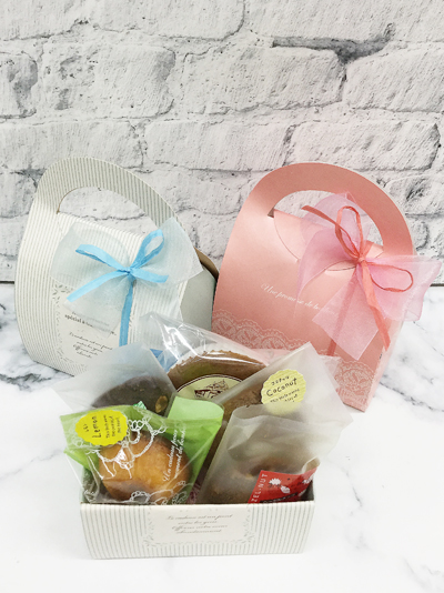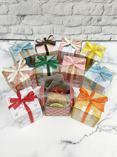 ギフトボックスお菓子が6個くらい入ります。